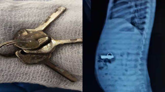 बिना सर्जरी के ही बाहर निकला चाबी का गुच्छा