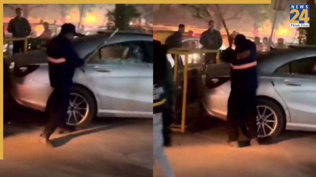 Gurugram: A security guard at Cyber Park, Sector 31, vandalised a Mercedes with sticks after an argument over wrong-side driving.