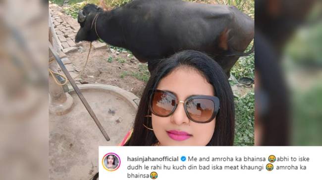 मोहम्मद शमी की पत्नी सोशल मीडिया पर काफी एक्टिव रहती हैं। हाल ही में उन्होंने सोशल मीडिया पर भैंसा का दूध पीने और कुछ दिनों बाद उसका मीट खाने की बात लिखी। इस पोस्ट के साथ उन्होंने हंसने वाला इमोजी भी लगाया। हसीन जहां के इस पोस्ट के बाद कई यूजर्स भड़क गए।
