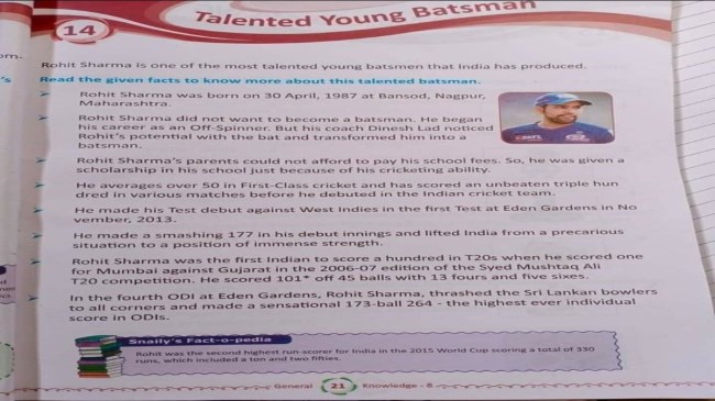 A chapter on Rohit Sharma in a school book. pic.twitter.com/X3KDtniNKl