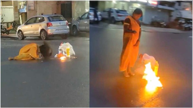 - एक महिला को जबलपुर में सड़क के बीचोंबीच तंत्र-मंत्र करते हुए और आग जलाते हुए देखा गया।