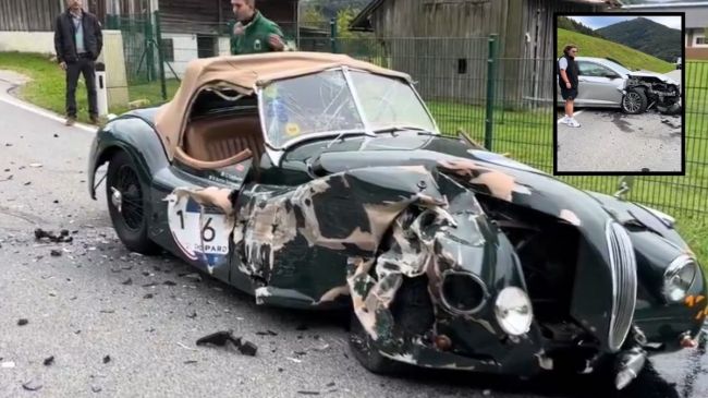 इस एक्सीडेंट में पुरानी 1948 की जगुआर XK120 बुरी तरह बर्बाद हो गई। वीडियो में एक घायल शख्स को यह कहते हुए सुना जा सकता है कि गाड़ी चलाते वक्त फोन पर बात क्यों करते हैं? दुर्घटना में शामिल दूसरी कार भी क्षतिग्रस्त हो गई थी और महिला चालक वहीं पास में ही खड़ी दिखाई दी। वीडियो इटली का बताया जा रहा है।