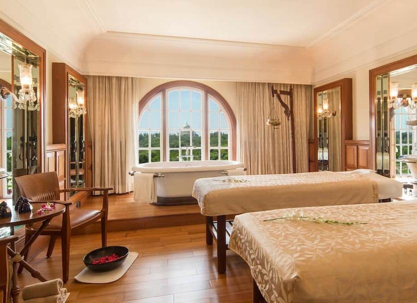 рдЗрд╕ рд╣реЛрдЯрд▓ рдХреЗ рдмрд╛рдерд░реВрдо рдХрд╛ рднреА рдЕрдкрдирд╛ рдПрдХ рдЕрд▓рдЧ рдПрд╣рд╕рд╛рд╕ рд╣реИ. рдпрд╣рд╛рдВ рдХреЗ рдмрд╛рдердЯрдм рд╕реЗ рднреА рддрд╛рдЬрдорд╣рд▓ рджрд┐рдЦрд╛рдИ рджреЗрддрд╛ рд╣реИ. рдЬреЛ рдПрдХ рдмреЗрд╣рддрд░реАрди рдПрд╣рд╕рд╛рд╕ рд╣реИ. рдЧреНрд▓рд╛рд╕ рдкреИрдирд▓ рд╡рд╛рд▓рд╛ рд╡реЙрдХ-рдЗрди рд░реЗрди рд╢реЙрд╡рд░ рдЖрдкрдХреЛ рдирд┐рдЬреА рд╕рди рдЯреИрд░реЗрд╕ рддрдХ рд▓реЗ рдЬрд╛рддрд╛ рд╣реИ, рдЬрд╣рд╛рдВ рд▓рд╛рдЙрдВрдЬрд░ рд▓рдЧреЗ рд╣реБрдП рд╣реИрдВ. рдпрд╣рд╛рдВ рдмреИрдардХрд░ рд╕реБрдмрд╣ рдХреА рдзреВрдк рд▓реЗрдирд╛ рдПрдХ рдЕрд▓рдЧ рд╣реА рдЖрдирдВрдж рджреЗрддрд╛ рд╣реИ. рдпрд╣рд╛рдВ рдПрдХ рдмрдбрд╝рд╛ рдбреНрд░реЗрд╕рд┐рдВрдЧ рд░реВрдо рдФрд░ рд╡реЙрдХ-рдЗрди рд╡реЙрд░реНрдбрд░реЛрдм рднреА рд╣реИ, рдЬрд┐рд╕рдореЗрдВ рд╕рд╛рдорд╛рди рд░рдЦрдиреЗ рдХреА рдкрд░реНрдпрд╛рдкреНрдд рдЬрдЧрд╣ рд╣реИ.