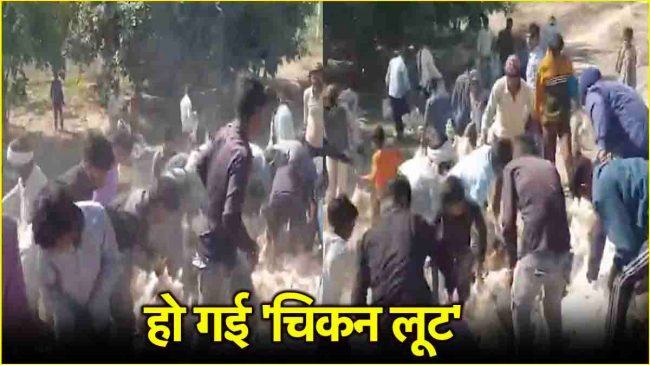 Kannauj, UP: A pickup truck carrying chickens from Amethi to Firozabad overturned on the Kannauj expressway after the driver fell asleep. Videos of people looting chickens went viral. Police and UPEIDA personnel intervened, dispersing the crowd, while the injured wereтАж pic.twitter.com/FF6lRshsvp
