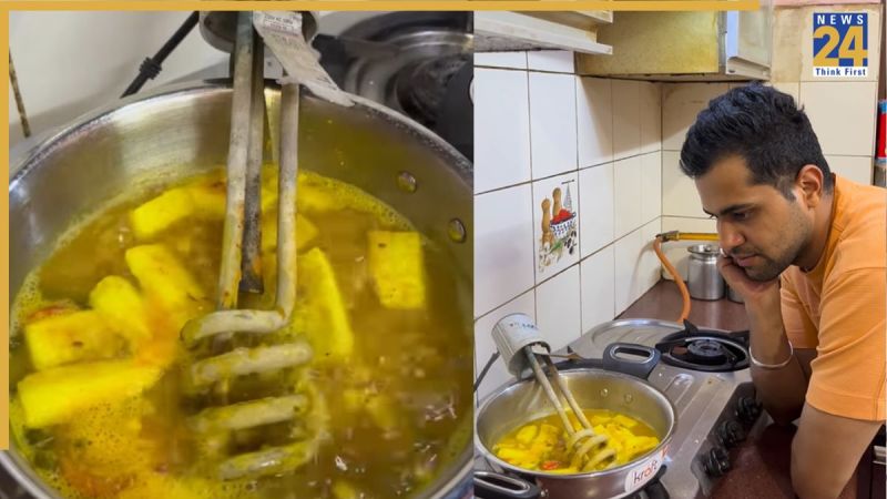 वायरल वीडियो में एक किचन का नजारा दिखाई देता है, लेकिन यहां खाना बनाने का तरीका बिल्कुल अलग है. गैस चूल्हे की जगह एक स्टील के बर्तन में सब्जी रखी गई है और उसे पकाने के लिए इमर्शन हीटर रॉड का इस्तेमाल किया जा रहा है. जैसे ही रॉड गर्म होती है, सब्जी में उबाल आने लगता है और वह पकती नजर आती है. वीडियो में यह भी लिखा है कि गैस खत्म हो गई है, इसलिए यह जुगाड़ अपनाया गया है.