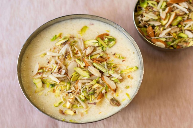 अब आपकी लजीज केसर बादाम खीर बनकर तैयार हो चुकी है।