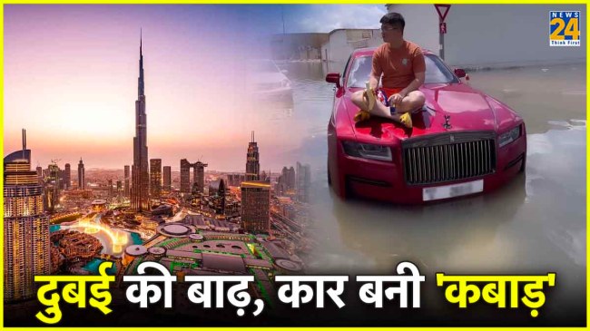 Man Enjoying On Rolls Royce In Dubai Rain Viral Video: युएई में 24 घंटे के अंदर इतनी बारिश हुई कि इससे बाढ़ जैसे हालात पैदा हो गए। बारिश और तूफान के चलते अफरातफरी मच गई और देखते-ही-देखते यह मामला घातक होता चला गया। इस डिजिटल की दुनिया में सोशल मीडिया पर हर टॉपिक की वीडियो वायरल होती हैं। जहां, बारिश की वीडियो सोशल मीडिया पर छाई हुई थी, इस बीच एक शख्स का हैरान कर देने वाला वीडियो सामने आया। वीडियो में शख्स भरे हुए पानी के बीच चिल करता नजर आ रहा है।