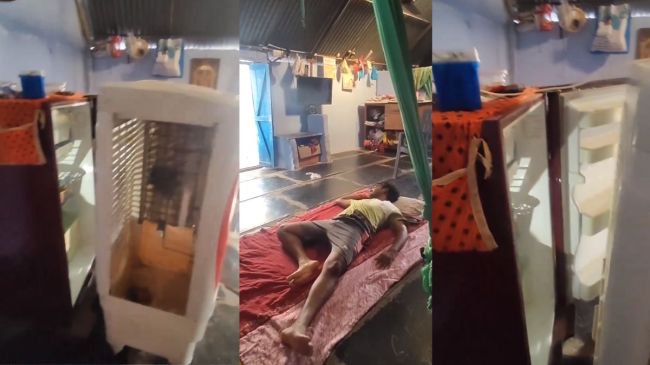 वीडियो में दिखाई दे रहा है कि एक शख्स फर्श पर सो रहा है और उसने अपने सामने कूलर लगाया हुआ है। हालांकि कूलर से ठंडी हवा के लिए इस शख्स ने गजब का दिमाग लगाया। दरअसल कूलर के पीछे फ्रिज खोलकर रख दिया। इससे फ्रिज की ठंडी हवा कूलर से होते हुए शख्स को मिलने लगी।