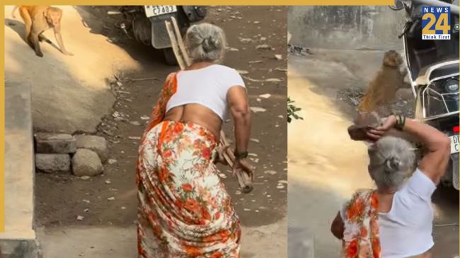 पास खड़े लोग बीच-बचाव करके महिला को बचा लेते हैं, लेकिन मामला यहीं खत्म नहीं होता. थोड़ी देर बाद जब एक दूसरी महिला डंडा लेकर आती है, तो बुजुर्ग महिला वह डंडा छीनकर फिर से बंदर को मारने की कोशिश करती हैं. इससे बंदर और ज्यादा भड़क जाता है और दोबारा हमला कर देता है.