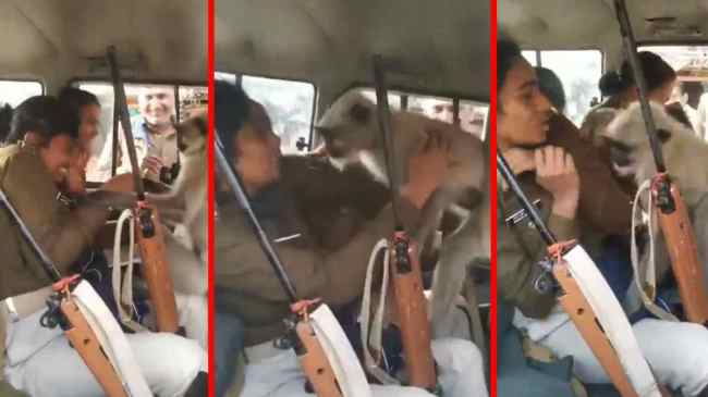 Monkey and Police Viral Video:рд╕реЛрд╢рд▓ рдореАрдбрд┐рдпрд╛ рдкрд░ рдПрдХ рд╡реАрдбрд┐рдпреЛ рд╡рд╛рдпрд░рд▓ рд╣реЛ рд░рд╣рд╛ рд╣реИ рдЬрд┐рд╕рдореЗрдВ рдПрдХ рдмрдВрджрд░ рдкреБрд▓рд┐рд╕ рдХреА рдЧрд╛реЬреА рдореЗрдВ рдШреБрд╕рдХрд░ рдорд╣рд┐рд▓рд╛ рд╕рд┐рдкрд╛рд╣рд┐рдпреЛрдВ рдХреЛ рдкрд░реЗрд╢рд╛рди рдХрд░ рд░рд╣рд╛ рд╣реИред рд╡рд╣рд╛рдВ рдореМрдЬреВрдж рд▓реЛрдЧ рдпрд╣ рдирдЬрд╛рд░рд╛ рджреЗрдЦ рд╣рдВрд╕ рд░рд╣реЗ рд╣реИрдВред рдЧрд╛реЬреА рдореЗрдВ рд╣рдерд┐рдпрд╛рд░ рд░рдЦреЗ рд╣реБрдП рд╣реИрдВ, рдорд╣рд┐рд▓рд╛ рдкреБрд▓рд┐рд╕рдХрд░реНрдореА рдмреИрдареА рд╣реБрдИ рд╣реИрдВ рдФрд░ рдмрдВрджрд░ рдЗрди рд╕рдмрдХреЗ рдмреАрдЪ рдШреВрдо рд░рд╣рд╛ рд╣реИ рдФрд░ рдорд╣рд┐рд▓рд╛ рд╕рд┐рдкрд╛рд╣рд┐рдпреЛрдВ рдХреЛ рдкрд░реЗрд╢рд╛рди рдХрд░ рд░рд╣рд╛ рд╣реИред