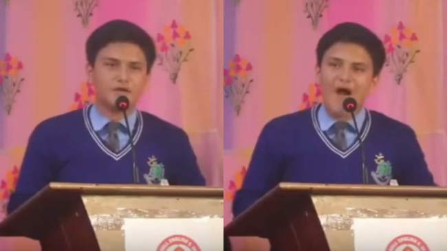 рдмрддрд╛рдпрд╛ рдЬрд╛ рд░рд╣рд╛ рд╣реИ рдХрд┐ рдпрд╣ рдЫрд╛рддреНрд░ рдиреЗрдкрд╛рд▓ рдХреЗ рдЭрд╛рдкрд╛ рд╕реНрдерд┐рдд рдЗрдВрдкреАрд░рд┐рдпрд▓ рдЗрдВрд╕реНрдЯреАрдЯреНрдпреВрдЯ рдХрд╛ рд╣реЗрдб рдмреЙрдп рд╣реИ, рдЬрд┐рд╕рдиреЗ рд╕реНрдХреВрд▓ рдХреЗ 24рд╡реЗрдВ рд╡рд╛рд░реНрд╖рд┐рдХ рдХрд╛рд░реНрдпрдХреНрд░рдо рдореЗрдВ рдпрд╣ рднрд╛рд╖рдг рджрд┐рдпрд╛ рдерд╛ред рд╣рд╛рд▓рд╛рдВрдХрд┐, рдпрд╣ рд╡реАрдбрд┐рдпреЛ рдХрдм рдХрд╛ рд╣реИ, рдЗрд╕рдХреА рдХреЛрдИ рдкреБрд╖реНрдЯ рдЬрд╛рдирдХрд╛рд░реА рдирд╣реАрдВ рд╣реИ, рд▓реЗрдХрд┐рди рдЫрд╛рддреНрд░ рдХреЗ рдЬреЛрд╢реАрд▓реЗ рднрд╛рд╖рдг рдиреЗ рд╕рдмрдХреЛ рдордВрддреНрд░рдореБрдЧреНрдз рдХрд░ рджрд┐рдпрд╛ рд╣реИред рд╡реАрдбрд┐рдпреЛ рдореЗрдВ рджрд┐рдЦрд╛рдИ рджреЗ рд░рд╣рд╛ рд╣реИ рдХрд┐ рд╡рд╣рд╛рдВ рдореМрдЬреВрдж рд▓реЛрдЧ рдЙрд╕рдХрд╛ рд╡реАрдбрд┐рдпреЛ рд░рд┐рдХреЙрд░реНрдб рдХрд░ рд░рд╣реЗ рд╣реИрдВред