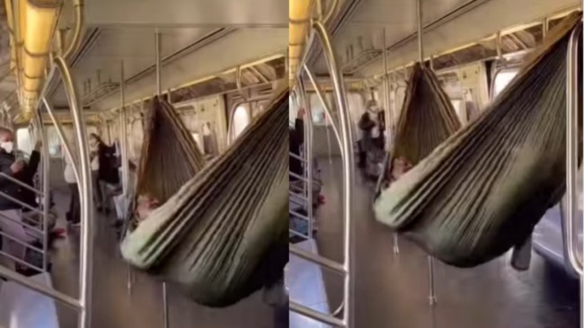 New York Metro man hanging swing: рдЗрд╕ рджреБрдирд┐рдпрд╛ рдореЗрдВ рдПрдХ рд╕реЗ рдмрдврд╝рдХрд░ рдПрдХ рдХрд▓рд╛рдХрд╛рд░ рдкрдбрд╝рд╛ рд╣реБрдЖред рдЗрд╕ рддрд░рд╣ рдХреЗ рдЙрджрд╛рд╣рд░рдг рд╣рдореЗрдВ рд╕реЛрд╢рд▓ рдореАрдбрд┐рдпрд╛ рдкрд░ рд╡рд╛рдпрд░рд▓ рд╣реЛрдиреЗ рд╡рд╛рд▓реЗ рд╡реАрдбрд┐рдпреЛ рдореЗрдВ рджреЗрдЦрдиреЗ рдорд┐рд▓рддреЗ рд╣реИрдВред рдЗрд╕реА рдмреАрдЪ рдЗрдВрдЯрд░рдиреЗрдЯ рдкрд░ рдПрдХ рдФрд░ рдРрд╕рд╛ рд╡реАрдбрд┐рдпреЛ рджреЗрдЦрдиреЗ рдХреЛ рдорд┐рд▓рд╛ рд╣реИред рдЬрд┐рд╕реЗ рджреЗрдЦрдХрд░ рдЖрдк рднреА рдХрд╣реЗрдВрдЧреЗ рдХрд┐ рдмрдбрд╝реЗ рдЧрдЬрдм рдХрд╛ рдЖрджрдореА рд╣реИред рджрд░рдЕрд╕рд▓, рдПрдХ рд╢рдЦреНрд╕ рд╕реЛрдиреЗ рдХреЗ рд▓рд┐рдП рдореЗрдЯреНрд░реЛ рдореЗрдВ рд╣реА рд╣реИрдВрдЧрд┐рдЧ рдЭреВрд▓рд╛ рдмрдирд╛ рджреЗрддрд╛ рд╣реИред рдЗрддрдирд╛ рд╣реА рдирд╣реАрдВ рдЙрд╕рдореЗрдВ рд╕реЛ рднреА рдЬрд╛рддрд╛ рд╣реИред рдпреЗ рд╡реАрдбрд┐рдпреЛ рдЕрдм рд╕реЛрд╢рд▓ рдореАрдбрд┐рдпрд╛ рдкрд░ рд╡рд╛рдпрд░рд▓ рд╣реЛ рд░рд╣рд╛ рд╣реИред