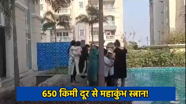 सोशल मीडिया पर वायरल हो रहे वीडियो में देखा जा सकता है कि कई महिलाएं एक स्विमिंग पूल में स्नान कर रही हैं। बताया गया कि सोसाइटी से कोई महाकुंभ गया था और वहां से गंगाजल लेकर आया। महिलाओं ने इस जल को स्विमिंग पूल में डालकर इसे ही संगम मान लिया और श्रद्धापूर्वक स्नान करती दिखाई दीं।
