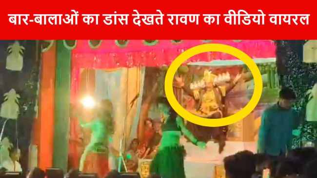 वीडियो में दिखाई दे रहा है कि रावण मंच पर ऊंची कुर्सी पर बैठा हुआ है और इस दौरान वह अपनी मूंछों को ताव दे रहा है। बार बालाओं के डांस को देखने में लोग मस्त है। वहीं किसी ने इसका वीडियो बनाकर सोशल मीडिया पर वायरल कर दिया और पुलिस अब इस मामले की जांच करने जा रही है।