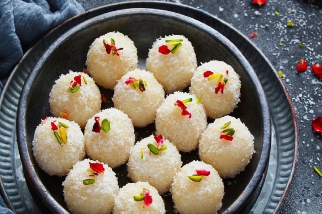 अब आपके प्रसाद के लिए टेस्टी नारियल के लड्डू बनकर तैयार हो चुके हैं।