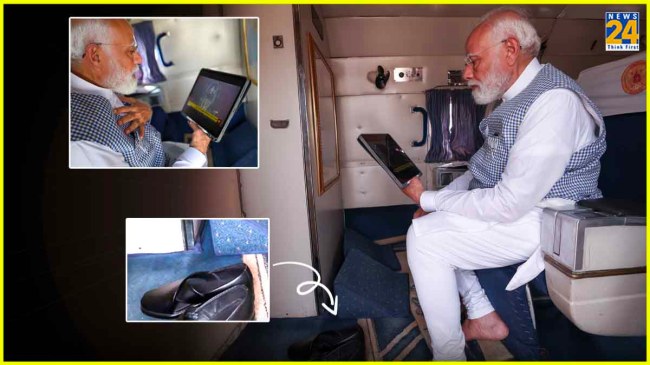 पीएम मोदी ने बताया कि सभा को संबोधित करने बाद उन्होंने सूर्य तिलक का वीडियो देखा। जिसकी तस्वीरें भी पीएम मोदी ने शेयर की हैं। इस तस्वीर में लोगों की नजर पीएम मोदी के पैर पर पड़ी तो पता चला कि जहाज में बैठकर, फोन पर राम लला के सूर्य तिलक का वीडियो देखने के लिए उन्होंने अपने जूते तक निकाले हुए थे।