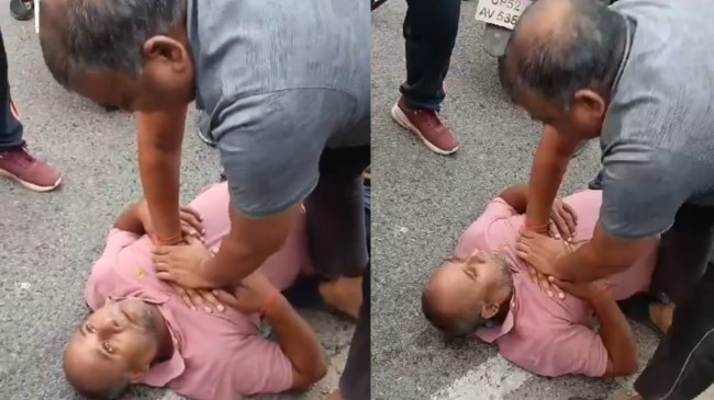 рд╡реАрдбрд┐рдпреЛ рдореЗрдВ рджрд┐рдЦрд╛рдИ рджреЗ рд░рд╣рд╛ рд╣реИ рдХрд┐ рд╢рдЦреНрд╕ рдЬрдореАрди рдкрд░ рдЬрдореАрди рдкрд░ рдЧрд┐рд░рд╛ рд╣реБрдЖ рд╣реИ рдФрд░ рдПрдХ рдЕрдиреНрдп рд╢рдЦреНрд╕ рдЙрд╕реЗ CPR рджреЗ рд░рд╣рд╛ рд╣реИред CPR рджреЗ рд░рд╣рд╛ рд╢рдЦреНрд╕ рд▓рдЧрд╛рддрд╛рд░ рдЬрдореАрди рдкрд░ рдкреЬреЗ рд╢рдЦреНрд╕ рд╕реЗ рдмрд╛рддрдЪреАрдд рдХрд░ рд░рд╣рд╛ рд╣реИ рдФрд░ рд╣реЛрд╢ рдореЗрдВ рд▓рд╛рдиреЗ рдХреА рдХреЛрд╢рд┐рд╢ рдХрд░ рд░рд╣рд╛ рд╣реИред рдЗрд╕ рджреМрд░рд╛рди рдХрдИ рд▓реЛрдЧ рдЖрд╕ рдкрд╛рд╕ рдЦреЬреЗ рдереЗред рдмрддрд╛рдпрд╛ рдЬрд╛ рд░рд╣рд╛ рд╣реИ рдХрд┐ CPR рджреЗ рд░рд╣рд╛ рд╢рдЦреНрд╕ UPP рдХрд╛ рдЬрд╡рд╛рди рд╣реИ рдФрд░ рдЬрдореАрди рдкрд░ рдЧрд┐рд░реЗ рд╢рдЦреНрд╕ рдХреЛ рд╣рд╛рд░реНрдЯ рдЕрдЯреИрдХ рдЖрдпрд╛ рдерд╛ред