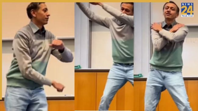 Professor dance viral video: सेमेस्टर के लास्ट डे पर आपने लोगो में टेंशन का माहौल तो जरूर देखा होगा. लेकिन एक ऐसी वीडियो भी तेजी से वायरल हो रही है जिसमें अमेरिका के फेमस स्कूल के एक प्रोफेसर ने पेपर के आखिरी दिन क्लास के दौरान बॉलीवुड गाने (‘बतमीज दिल’) पर शानदार डांस किया. जिसे देख क्लास का माहौल एकदम बदल गया. हमेशा यह सुना है कि अगर बॉलीवुड गाने बजे तो पैर अपने आप ही थिरकने लगते हैं, लेकिन वीडियो में जैसे देखा तो यह लाइन भी सही साबित हो गई.