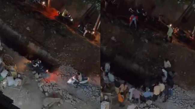 Pune Viral Video : महाराष्ट्र के पुणे में बीच सड़क पर खोदे गए गड्ढे में एक शख्स बाइक समेत गिर गया। गड्ढा काफी गहरा था, ऐसे में वहां मौजूद लोग शख्स को तुरंत बाहर नहीं निकाल पाए। शख्स के गड्ढे में गिरने का वीडियो सोशल मीडिया वायरल हो रहा है और इसके बाद लोगों ने नगर निगम को निशाने पर लिया है क्योंकि गड्ढा नगर निगम के द्वारा ही खोदा गया था।