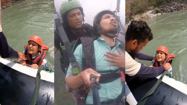 वीडियो में दिखाई दे रहा है कि एक लड़की राफ्टिंग के दौरान पानी में उतर गई है। पानी में उतरते ही वह बुरी तरह डर गई। लड़की ने रोते हुए गाइड से कहा कि वह ऊपर आना चाहती है, उसे डर लग रहा है। लड़की ने कहा कि भैया मुझे ऊपर आना है प्लीज मुझे ऊपर ले लो।
