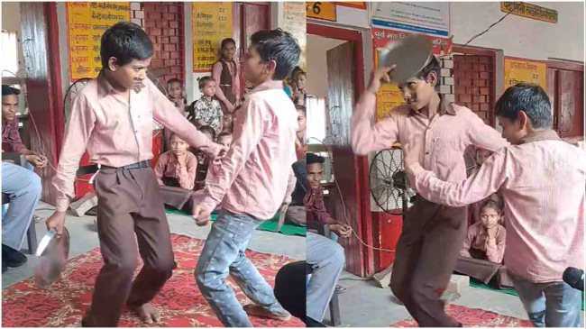 Sarkari School Dance Video: उत्तर प्रदेश के मैनपुरी से एक अनोखा और मजेदार वीडियो सामने आया है, जिसमें स्कूली बच्चों ने एक अजीब तरह का डांस किया है। यह वीडियो सोशल मीडिया पर तेजी से वायरल हो रहा है, और इसे देखकर हर कोई हंसी से लोटपोट हो रहा है। इस डांस में बच्चे अपने सिर पर थाली मारते हुए डांस करते हैं, जिसे “थाली तोड़ डांस” या “कप्पल फोड़ डांस” कहा जा रहा है। इस डांस का नाम सुनते ही आपको इसका मजेदार अंदाज समझ में आ जाएगा। वीडियो में बच्चे किसी भोजपुरी गाने पर नाचते हुए बीच-बीच में अपने सिर पर थाली मारते हैं, जिसे देखकर मेहमान और दर्शक सभी हंसी नहीं रोक पाए। बच्चों के इस अजीबो-गरीब डांस स्टेप्स ने न सिर्फ मेहमानों का ध्यान खींचा, बल्कि सोशल मीडिया पर भी खूब तारीफ बटोरी। यह वीडियो अब लाखों लोगों द्वारा देखा जा चुका है।