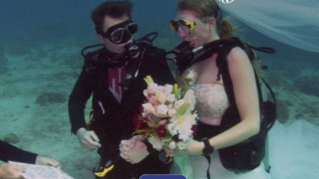 कई मीडिया रिपोर्ट में इस शादी को लेकर खबरें सामने आई हैं। बता दें कि ये कपल डाइवर्स हैं और अपनी शादी को अनोखे ढंग से करना चाहते थे। लोग अपने प्यार को साबित करने के लिए अलग-अलग तरीके अपनाते हैं, कोई महंगे गिफ्ट देता है तो कोई अपनी शादी को खास बनाने के लिए डेस्टिनेशन वेडिंग करता है, मगर इस कपल ने एक अनोखा तरीका चुना है। आइये इसके बारे में जानते हैं।