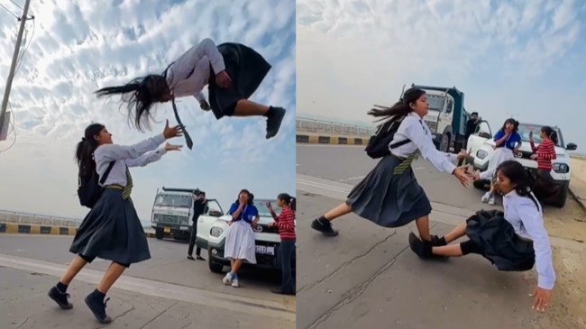 Girl Viral Video: рд╕реЛрд╢рд▓ рдореАрдбрд┐рдпрд╛ рдкрд░ рдлреЗрдорд╕ рд╣реЛрдиреЗ рдХрд╛ рднреВрдд рд▓реЛрдЧреЛрдВ рдХреЗ рд╕рд┐рд░ рдЗрд╕ рдХрджрд░ рд╕рд╡рд╛рд░ рд╣реИ рдХрд┐ рд▓реЛрдЧ рдЕрдкрдиреА рдЬрд╛рди рдХреЛ рдЬреЛрдЦрд┐рдо рдореЗрдВ рдбрд╛рд▓рдХрд░ рд░реАрд▓ рдФрд░ рд╡реАрдбрд┐рдпреЛ рдмрдирд╛ рд░рд╣реЗ рд╣реИрдВред рд░реАрд▓ рдмрдирд╛рдиреЗ рдХреЗ рд▓рд┐рдП рд▓реЛрдЧ рдХрд┐рд╕реА рднреА рд╣рдж рддрдХ рдЬрд╛рдиреЗ рдХреЛ рддреИрдпрд╛рд░ рд╣реЛрддреЗ рд╣реИрдВред рдРрд╕рд╛ рд╣реА рдПрдХ рд╕реЛрд╢рд▓ рдореАрдбрд┐рдпрд╛ рдкрд░ рд╡рд╛рдпрд░рд▓ рд╣реЛ рд░рд╣рд╛ рд╣реИ, рдЬрд┐рд╕рдореЗрдВ рджреЛ рд╕реНрдХреВрд▓реА рд▓рдбрд╝рдХрд┐рдпрд╛рдВ рд╕рдбрд╝рдХ рдХреЗ рдмреАрдЪ рдЦрддрд░рдирд╛рдХ рд╕реНрдЯрдВрдЯ рдХрд░рддреА рдирдЬрд░ рдЖ рд░рд╣реА рд╣реИрдВред рд╡реАрдбрд┐рдпреЛ рдХреЛ рд▓реЛрдЧ рдЦреВрдм рдкрд╕рдВрдж рдХрд░ рд░рд╣реЗ рд╣реИрдВред