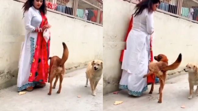 वायरल वीडियो में एक महिला सड़क पर घूम रहे कुत्तों के आसपास घूमती दिखाई दे रही है। कहा जा रहा है कि वह कुत्तों को दुलार कर रही थी। हालांकि इसी बीच एक अन्य कुत्ता लड़की के पास पहुंचा और अपनी टांग उठाकर पेशाब करना लगा। लड़की यह देखकर वहां से भागने लगी।