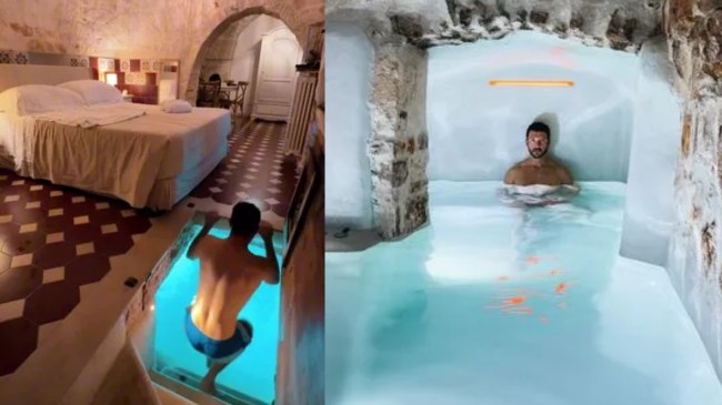рдЖрдк рдХрд┐рд╕реА рд╣реЛрдЯрд▓ рдореЗрдВ рдард╣рд░реЗ рд╣реЛрдВред рд░рд╛рдд рдореЗрдВ рдЕрдЪрд╛рдирдХ рдЙрдардХрд░ рд╡реЙрд╢рд░реВрдо рдХреЗ рд▓рд┐рдП рдХрджрдо рдмрдврд╝рд╛рдПрдВ рдФрд░ рдЦреБрдж рдХреЛ рдкрд╛рдиреА рдореЗрдВ (рд╕реНрд╡рд┐рдорд┐рдВрдЧ рдкреВрд▓ рдореЗрдВ) рдкрд╛рдПрдВ рддреЛ рдЖрдкрдХреЛ рдХреИрд╕рд╛ рд▓рдЧреЗрдЧрд╛? рд╣рд░ рдХрд┐рд╕реА рдХрд╛ рдкрд╣рд▓рд╛ рдЬрд╡рд╛рдм рд╣реЛрдЧрд╛ рдЕрджреНрднреБрдд-рдЕрдХрд▓реНрдкрдиреАрдп-рдЕрд╡рд┐рд╢реНрд╡рд╕рдиреАрдпред рд╣рд╛рд▓ рдореЗрдВ рд╕реЛрд╢рд▓ рдореАрдбрд┐рдпрд╛ рдХреЗ рдЬрд░рд┐рдпреЗ рдПрдХ рд╣реЛрдЯрд▓ рдХреБрдЫ рдРрд╕реА рд╣реА рддрд╕реНрд╡реАрд░реЗрдВ рд╕рд╛рдордиреЗ рдЖрдИ рд╣реИрдВред рд╣реЛрдЯрд▓ рдХреЗ рдмрд┐рд╕реНрддрд░ рд╕реЗ рдкреВрд▓ рдореЗрдВ рдХреВрджрдирд╛ рдПрдХ рд╕рдкрдиреЗ рдЬреИрд╕рд╛ рд▓рдЧ рд╕рдХрддрд╛ рд╣реИ, рд▓реЗрдХрд┐рди рдпрд╣ рд╣рдХреАрдХрдд рд╣реИред рджрд░рдЕрд╕рд▓, рджрдХреНрд╖рд┐рдгреА рдЗрдЯрд▓реА рдХреЗ рдЕрдкреБрд▓реАрдпрд╛ рдХреЗ рд▓реЛрдХреЛрд░реЛрдЯреЛрдВрдбреЛ рдореЗрдВ рд▓рд┐рдпреЛрдирд╛рд░реНрдбреЛ рдЯреНрд░реБрд▓реА рд░рд┐рдЬреЙрд░реНрдЯ рдореЗрдВ рд░реБрдХреЗ рд╕реНрдЯреЗрдлрд╝рд╛рдиреЛ рдбрд┐рдУрдИ рдирд╛рдордХ рдПрдХ рд╢рдЦреНрд╕ рдиреЗ рдЙрд╕ рд╣реЛрдЯрд▓ рдХреА рддрд╕реНрд╡реАрд░реЗрдВ рд╢реЗрдпрд░ рдХреА рд╣реИрдВред рдЗрд╕ рд╣реЛрдЯрд▓ рдиреЗ 300 рд╕рд╛рд▓ рдкреБрд░рд╛рдиреЗ рд╢рд░рд╛рдм рдХреЗ рддрд╣рдЦрд╛рдиреЗ рдХреЛ рдПрдХ рдЕрдиреЛрдЦреЗ рд╕реНрд╡рд┐рдорд┐рдВрдЧ рдкреВрд▓ рдореЗрдВ рддрдмреНрджреАрд▓ рдХрд░ рджрд┐рдпрд╛ред рдЧрдЬрдм рдХреА рдмрд╛рдд рддреЛ рдпрд╣ рд╣реИ рдХрд┐ рдЗрд╕ рдкреВрд▓ рдХреА рдмреЗрдбрд░реВрдо рд╕реЗ рд╕реАрдзреА рдХрдиреЗрдХреНрдЯрд┐рд╡рд┐рдЯреА рд╣реИред