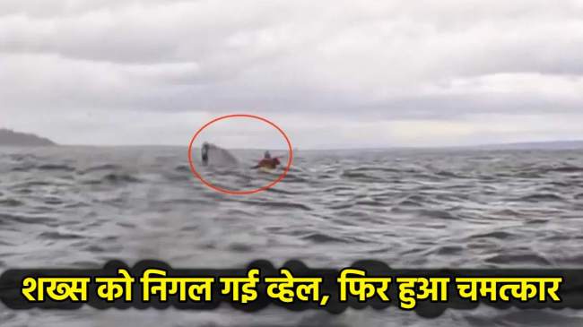Humpback Whale Viral Video : समुद्र के बीच व्हेल मछली से मुठभेड़ का एक वीडियो सोशल मीडिया पर वायरल हो रहा है। वीडियो चिली के सुदूर दक्षिणी पैटागोनिया क्षेत्र के बर्फीले पानी में का बताया जा रहा है, जहां पिता-पुत्र की जोड़ी समुद्र में कयाक से भ्रमण के लिए निकले थे लेकिन तभी 24 साल के कयाकर को एक हंपबैक व्हेल ने निगल लिया।