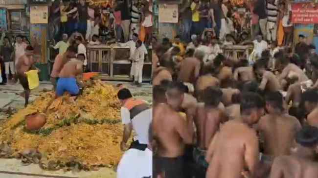 Gujarat News : गुजरात के खेड़ा जिले में मौजूद एक मंदिर की अनोखी परंपरा है। इस मंदिर में 151मण अन्नकूट प्रसाद को लूट के लिए रखा जाता है। बड़ी संख्या में लोग मंदिर के पास एकत्रित होते हैं और प्रसाद को लूटने के लिए टूट पड़ते हैं। कुछ भक्त ऐसे भी होते हैं, जिन्हें प्रसाद मिल पाता है और जिन्हें मिल पाता है वह बोरे में भरकर ले जाते हैं।