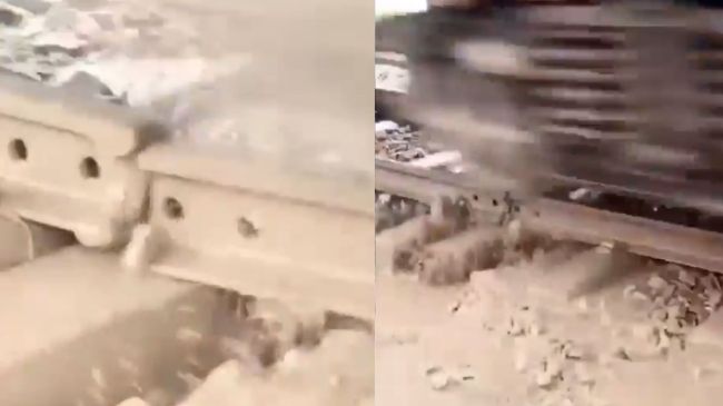 рд╡реАрдбрд┐рдпреЛ рдореЗрдВ рджрд┐рдЦрд╛рдИ рджреЗ рд░рд╣рд╛ рд╣реИ рдХрд┐ рдПрдХ рдЯреНрд░реЗрди рддреЗрдЬреА рд╕реЗ рдЧреБрдЬрд░ рд░рд╣реА рд╣реИ, рдЬрд┐рд╕ рдЬрдЧрд╣ рд╕реЗ рдЯреНрд░реЗрди рдЧреБрдЬрд░ рд░рд╣реА рд╣реИ, рд╡рд╣рд╛рдВ рдХреА рдкрдЯрд░реА ‘рдЯреВрдЯреА’ рд╣реБрдИ рджрд┐рдЦрд╛рдИ рджреЗ рд░рд╣реА рд╣реИред рдЗрддрдирд╛ рд╣реА рдирд╣реАрдВ, рд╡рд╣рд╛рдВ рдмрд╛рд░рд┐рд╢ рдХреА рд╡рдЬрд╣ рд╕реЗ рджрд▓рджрд▓ рд╣реЛ рдЧрдпрд╛ рдФрд░ рдЯреНрд░реИрдХ рдЬрдореАрди рдореЗрдВ рдзрдВрд╕ рд░рд╣рд╛ рд╣реИред рдЗрд╕ рд╡реАрдбрд┐рдпреЛ рдХреЛ рд╢реЗрдпрд░ рдХрд░ рд▓реЛрдЧреЛрдВ рдХрд╛ рдХрд╣рдирд╛ рд╣реИ рдХрд┐ рд░реЗрд▓рд╡реЗ рджреНрд╡рд╛рд░рд╛ рд▓рд╛рдкрд░рд╡рд╛рд╣реА рдмрд░рддреА рдЬрд╛ рд░рд╣реА рд╣реИ, рдЗрд╕реА рд╡рдЬрд╣ рд╕реЗ рджреБрд░реНрдШрдЯрдирд╛рдПрдВ рд╣реЛрддреА рд╣реИрдВред