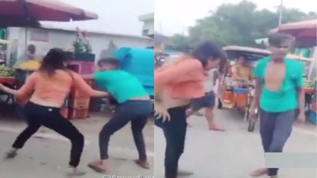The fact is that this video shows a fight between a man and a kinnar at Bari bypass in Badaun, Uttar Pradesh. The kinnar Chandni got into an argument with the e-rickshaw driver Anmol Gupta, and thrashed him after taking pants off.