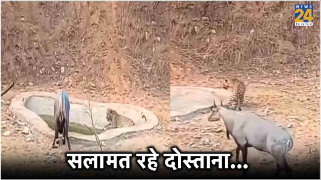 Leopard Nilgai Drinking Water Together: सोशल मीडिया पर एक वीडियो देखने को मिला, जिसे देखकर आपको भी जंगल बुक की कहानी, जल समझौता याद आ जाएगा और आप बॉलीवुड का वो मशहूर गाना गुनगुनाने लगेंगे, जिसे अकसर दोस्तों के लिए गाया जाता है…बने चाहे दुश्मन जमाना हमारा, सलामत रहे दोस्ताना हमारा।