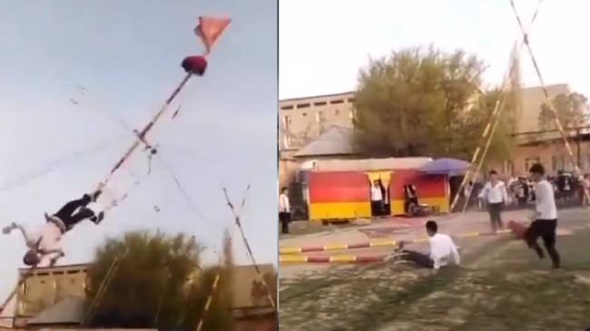 वीडियो के अनुसार, 3 लोग मैदान में नीचे खड़े हुए हैं। इस बीच जैसे ही आर्टिस्ट पिलर से हवा में कूदता है, उसके पैरों में रस्सियां फंस जाती हैं। इससे पिलर बीच में से टूट जाता है। पिलर टूटने से आर्टिस्ट धड़ाम से जमीन पर आकर गिरता है। यह देखकर दर्शक चिल्लाने लगते हैं। आर्टिस्ट जमीन पर गिरने के बाद उठकर बैठ जाता है। उसके साथी उसके आकर संभालते हैं और एक आर्टिस्ट की तरह वह कलाबाजियां खाते हुए अंदर चला जाता है। कहते हैं कि जाको राखे साइयां, मार सके न कोय, बस यही इस कलाकार के साथ हुआ।