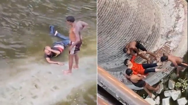 सोशल मीडिया पर वायरल हो रहे वीडियो में देखा जा सकता है कि एक शख्स नदी से निकालकर एक युवक को घसीटते हुए किनारे पर लाता है। फिर वह उसके मुंह पर थप्पड़ ही थप्पड़ मारता है। वीडियो बना रहे युवक चिल्लाने लगते हैं। दूसरी ओर कुछ युवक लड़की को किनारे पर लाते हैं। वे उसे होश में लाने की कोशिश करते हैं।