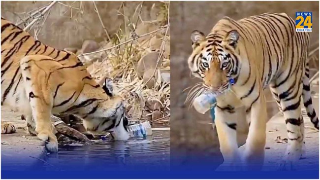 Wild Animal Tiger Video Captured Plastic Bottle In Mouth: सोशल मीडिया पर जंगली जानवर बाघ के कई वीडियो देखे होंगे, लेकिन बाघ का एक वीडियो खूब वायरल हो रहा है और देशवासियों को एक संदेश दे रहा है। हालांकि लोगों ने इस वीडियो के मजे भी लिए, लेकिन वनप्रेमियों ने उन्हें आईना दिखाया। वन्यजीव फोटोग्राफर दीप कथिकर द्वारा इस वीडियो को शूट किया गया और जिसे उन्होंने 13 फरवरी को इंस्टाग्राम पर पोस्ट किया। इसके बाद भारतीय वन सेवा अधिकारी सुशांत नंदा ने वीडियो को अपने X अकाउंट पर शेयर किया।