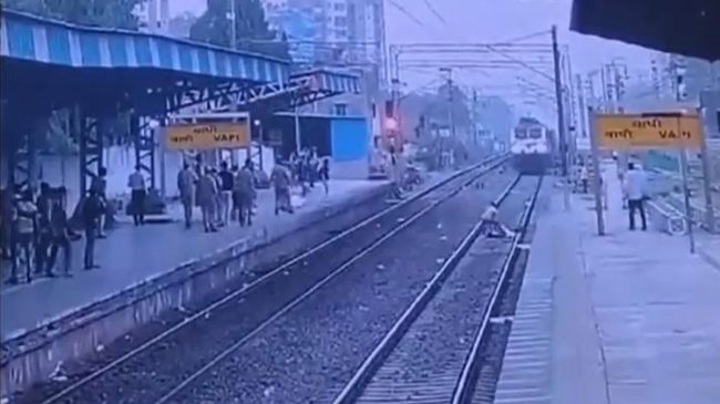 सामने आए सीसीटीवी फुटेज में कई लोगों को एक प्लेटफार्म से दूसरे प्लेटफॉर्म पर जाने के लिए ट्रैक पार करते देखा जा जा रहा है, जो कि रेलवे के नियमों के खिलाफ है। लेकिन ये आम बात है, आपने भी ये देखा होगा कि स्टेशन पर लगे फुट ओवर ब्रिज को छोड़कर रेलवे ट्रैक से ही प्लेटफॉर्म बदलते हैं। इसी तरह मंगलवार को गुजरात के वापी स्टेशन पर भी लोग पटरियों के साइड से ही प्लेटफॉर्म बदलते नजर आए। इस समय, एक बुजुर्ग व्यक्ति को पटरियों को पार करते हुए देखा जा सकता है क्योंकि सूरत-बांद्रा टर्मिनस इंटरसिटी ट्रेन शाम 6 बजे के आसपास स्टेशन में प्रवेश कर रही है। जैसे ही ट्रेन करीब आती है, बुजुर्ग व्यक्ति लड़खड़ाकर पटरियों के बीच गिर जाता है।