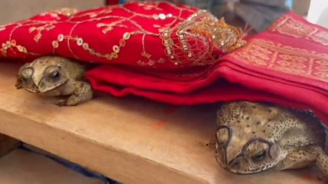 वीडियो में पंडित जी विधि विधान से मेंढक की शादी करवा रहे हैं। यह सब इसीलिए हो रहा है, ताकि बारिश के देवता प्रसन्न हो जाएं। शादी करवाने में शामिल पंडित का कहना है कि पहले के जमाने में लोग अच्छी बारिश के लिए मेंढक की शादी करवाते थे लेकिन आधुनिक जमाने में लोगों ने ये सब बंद कर दिया और इसे अंधविश्वास बताते हैं।