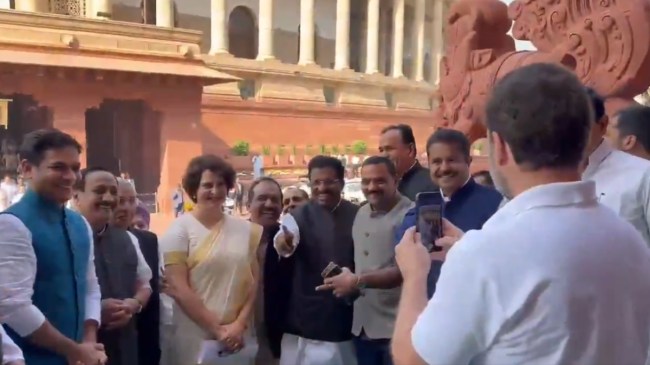 जब प्रियंका गांधी संसद पहुंची तो वहां कांग्रेस के कई नेता उनके स्वागत के लिए पहुंचे थे। खुद राहुल गांधी भी वहां मौजूद थे। जब प्रियंका गांधी संसद की सीढ़ियां चढ़ रही थीं तो राहुल गांधी ने उन्हें रोका और अपने मोबाइल से फोटो खींचने लगे। प्रियंका भी वहां खड़ी होकर फोटो खिंचवाने लगीं। भाई-बहन का यह वीडियो सोशल मीडिया पर वायरल हो रहा है।
