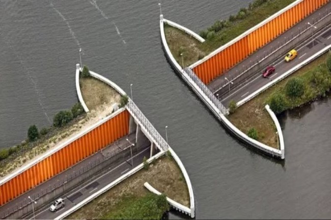 рдЯреНрд╡рд┐рдЯрд░ рдкрд░ рд╕рд╛рдЭрд╛ рдХрд┐рдпрд╛ рдЧрдпрд╛ рд╡реАрдбрд┐рдпреЛ Veluwemeer Aqueduct рдмреНрд░рд┐рдЬ рдХрд╛ рдПрдХ рдЖрд╕рдорд╛рди рд╕реЗ рд▓рд┐рдпрд╛ рдЧрдпрд╛ рджреГрд╢реНрдп рд╣реИред рдЗрд╕рдореЗрдВ рдЖрдкрдХреЛ рд╢реБрд░реВрдЖрдд рдореЗрдВ рдХреБрдЫ рдЧрд╛рдбрд╝рд┐рдпрд╛рдВ рд╕рдбрд╝рдХ рдкрд░ рдЪрд▓рддреА рджрд┐рдЦрд╛рдИ рджреЗрдВрдЧреА рдФрд░ рдЕрдЪрд╛рдирдХ рдЧрд╛рдпрдм рд╣реЛ рдЬрд╛рдПрдВрдЧреАред рдлрд┐рд░ рдЖрдЧреЗ рд╕реЗ рдирд┐рдХрд▓рддреА рджрд┐рдЦрд╛рдИ рджреЗрдВрдЧреАред рдмреАрдЪ рдореЗрдВ рдирджреА рд╣реИ рдФрд░ рд╕рдм рдпрд╣ рджреЗрдЦрдХрд░ рд╣реИрд░рд╛рди рд╣реИред рд▓реЗрдХрд┐рди рдмрддрд╛ рджреЗрдВ рдХрд┐ рдпрд╣ рдПрдХ рдкреБрд▓ рд╣реИред рдЖрдорддреМрд░ рдкрд░ рд╣рд░ рдЬрдЧрд╣ рдирджреА рдкрд░ рдкреБрд▓ рдмрдирд╛рдпрд╛ рдЬрд╛рддрд╛ рд╣реИ, рд▓реЗрдХрд┐рди рдпрд╣рд╛рдВ рдЙрд▓рдЯрд╛ рд╣реИред