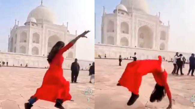 рдЖрдЧрд░рд╛ рдХреЗ рддрд╛рдЬрдорд╣рд▓ рдореЗрдВ рдХрд┐рд╕реА рднреА рддрд░рд╣ рдХреА рд░реАрд▓ рдмрдирд╛рдиреЗ рдкрд░ рд░реЛрдХ рд╣реИ рд▓реЗрдХрд┐рди рдХреЬреА рд╕реБрд░рдХреНрд╖рд╛ рдХреЗ рдмреАрдЪ рднреА рдХрдИ рд▓реЛрдЧ рд░реАрд▓ рдмрдирд╛рдиреЗ, рдЕрдЬреАрдм рд╣рд░рдХрддреЗрдВ рдХрд░рдиреЗ рдФрд░ рд╡рд┐рд╡рд╛рдж рд╡реАрдбрд┐рдпреЛ рдмрдирд╛рдиреЗ рдореЗрдВ рдХрд╛рдордпрд╛рдм рд╣реЛ рдЬрд╛рддреЗ рд╣реИрдВред рдЕрдм рд▓рд╛рд▓ рд╕рд╛реЬреА рдкрд╣рдирдХрд░ рдПрдХ рд▓реЬрдХреА рддрд╛рдЬрдорд╣рд▓ рдХреЗ рд╕рд╛рдордиреЗ рд░реАрд▓ рдмрдирд╛рдХрд░ рдЙрд╕реЗ рд╕реЛрд╢рд▓ рдореАрдбрд┐рдпрд╛ рдкрд░ рд╢реЗрдпрд░ рдХрд░ рджрд┐рдпрд╛ рд╣реИ, рдЬрд┐рд╕рдХреЛ рд▓реЗрдХрд░ рдХрд╛рд░реНрд░рд╡рд╛рдИ рдХреА рдорд╛рдВрдЧ рд╣реЛ рд░рд╣реА рд╣реИред