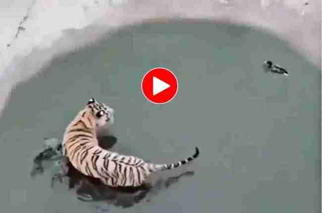 वायरल हो रहे इस वीडियो में देखा जा सकता है कि चिड़िया को पकड़ने के लिए टाइगर गड्डे में जैसे ही छलांग लगाता है वो पानी में डुबकी लगा लेती है और सीधे टाइगर के पीछे निकलती है। टाइगर जैसे ही घूमता है वो फिर से डुबकी लगा लेती है। काफी देर तक दोनों में यहीं खेल चलता रहता है। टाइगर यहां चाह कर भी चिड़िया को पकड़ नहीं पाता है और हाथ मलता रह जाता है। चिड़िया ने इस तरह चालाती दिखाकर अपनी जान बचा ली।