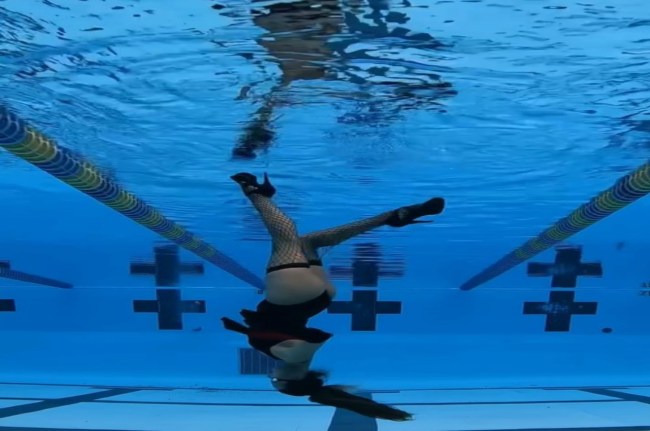 इस वीडियो को देखकर आप भी हैरान हो जाएंगे और कहंगे की लोगों में इतना टैलेंट कहां से आता है। महिला हाई हिल पहन कर पानी में इतना अच्छा वाक कर रही है जैसे मानों वो सड़क पर वार कर रही हो। इसके बाद वह अचानक पूरे 360 डिग्री के आसपास घूम जाती है, पूल के नीचे से एक बैग पकड़ती है, उसे अपने कंधे पर रख देती है, और सीधे चलने लगती है।