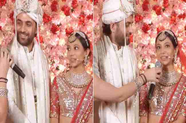 वायरल हो रहे इस वीडियो में दूल्हा-दुल्हन जयमाला स्टेज पर खड़े नजर आ रहे है। दोनों ने सेम कलर की शादी की ड्रेस पहनी हुई है, जिसमें वो काफी सुंदर लग रहे हैं। तभी वहां एक लड़की आती है और दोनों से कुछ सवाल पूछने लगती है। जिसके बाद वो दुल्हन से कुछ ऐसा पूछ लेती है जिसे सुनकर वो हैरान रह जाती है। बता दें, लड़की दुल्हन से पूछती है कि, क्या वो कभी अपने पति का फोन चेक करेगी।