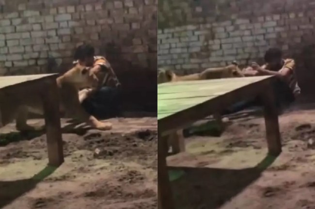 वीडियो में देखा जा सकता है कि एक आदमी पर दोनों शेर किस कदर हमला कर रहे हैं। वह उसको मारना चाहते हैं। बताया गया कि जिस शख्स ने इन शेरों को पाल रखा था, उसने अपने दोस्त को भी शेरों के साथ खेलने को बुलाया। हालांकि, वह खेल जानलेवा हो गया और वीडियो में दिख रहे आदमी को जान बचाना भारी पड़ गया।