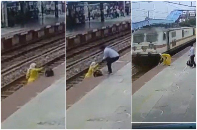 рдЙрд╕рдиреЗ рддрддреНрдХрд╛рд▓ рдорд╣рд┐рд▓рд╛ рдХрд╛ рд╣рд╛рде рдкрдХрдбрд╝ рдХрд░ рдкреНрд▓реЗрдЯрдлреЙрд░реНрдо рдкрд░ рдЦреАрдВрдЪ рд▓рд┐рдпрд╛ред рд╡реНрдпрдХреНрддрд┐ рдиреЗ рдкреНрд▓реЗрдЯрдлреЙрд░реНрдо рдХреЗ рдХрд┐рдирд╛рд░реЗ рдкрд░ рд░рдЦреЗ рдЙрд╕рдХреЗ рдмреИрдЧ рдХреЛ рдЙрдард╛рдпрд╛ред рдЗрд╕рдХреЗ рдмрд╛рдж рднреА рдорд╣рд┐рд▓рд╛ рдиреЗ рд╡рд╣рд╛рдВ рдкрдбрд╝реА рдкрд╛рдиреА рдХреА рдмреЛрддрд▓ рдЙрдард╛рдиреЗ рдХрд╛ рдкреНрд░рдпрд╛рд╕ рдХрд┐рдпрд╛, рддрднреА рдЙрд╕рдХреЗ рдмрд┐рд▓реНрдХреБрд▓ рдкрд╛рд╕ рд╕реЗ рд╣реЛрддреЗ рд╣реБрдП рддреЗрдЬ рд░рдлреНрддрд╛рд░ рдореЗрдВ рдЧреБрдЬрд░ рдЧрдИред рдШрдЯрдирд╛ рдХреЗ рдмрд╛рд░реЗ рдореЗрдВ рдЬреАрдЖрд░рдкреА рдХреЗ рд╕рд┐рдкрд╛рд╣реА рд╢рд┐рд╡рд▓рд╛рд▓ рдореАрдгрд╛ рдиреЗ рдмрддрд╛рдпрд╛ рдХрд┐ рд╣рдордиреЗ рдПрдХ рдорд╣рд┐рд▓рд╛ рдХреЛ рд░реЗрд▓рд╡реЗ рд▓рд╛рдЗрди рдкрд╛рд░ рдХрд░рддреЗ рд╣реБрдП рджреЗрдЦрд╛ред рдЙрд╕реА рджреМрд░рд╛рди рд╡рд╣рд╛рдВ рд╕реЗ рдЯреНрд░реЗрди рдЧреБрдЬрд░рдиреЗ рд╡рд╛рд▓реА рдереАред рдкреБрд▓рд┐рд╕ рдХрд░реНрдореА рдиреЗ рдмрддрд╛рдпрд╛ рдХрд┐ рд╡рд╣ рдорд╣рд┐рд▓рд╛ рдХреЛ рдмрдЪрд╛рдиреЗ рдХреЗ рд▓рд┐рдП рджреМрдбрд╝рд╛ред рдЙрд╕реЗ рдкрдЯрд░реА рд╕реЗ рдкреНрд▓реЗрдЯ рдлреЙрд░реНрдо рдкрд░ рдЦреАрдВрдЪрд╛ред