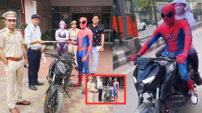 рд▓реЬрдХреЗ рдХреЗ рд╕рд╛рде рдореМрдЬреВрдж рд▓реЬрдХреА рднреА рд╕реНрдкрд╛рдЗрдбрд░рдореИрди рдХреА рддрд░рд╣ рдбреНрд░реЗрд╕ рдкрд╣рдиреА рд╣реБрдИ рдереАред рд╣рд╛рд▓рд╛рдВрдХрд┐ рджреЛрдиреЛрдВ рджрд┐рд▓реНрд▓реА рдХреА рд╕реЬрдХреЛрдВ рдкрд░ рддрд╛рдВрдбрд╡ рдХрд░ рдкрд╛рддреЗ, рдЗрд╕рд╕реЗ рдкрд╣рд▓реЗ рд╣реА рдкреБрд▓рд┐рд╕ рдиреЗ рд╣рдЬрд╛рд░реЛрдВ рдХрд╛ рдЪрд╛рд▓рд╛рди рднреЗрдЬ рджрд┐рдпрд╛ред рд╕реЛрд╢рд▓ рдореАрдбрд┐рдпрд╛ рдкрд░ рдлреЛрдЯреЛ рд╡рд╛рдпрд░рд▓ рд╣реЛ рд░рд╣рд╛ рд╣реИ, рдЬрд┐рд╕рдореЗрдВ рджреЗрдЦрд╛ рдЬрд╛ рд╕рдХрддрд╛ рд╣реИ рдХрд┐ рдЧрд╛реЬреА рдХреЗ рд╕рд╛рде рд▓реЬрдХрд╛ рдФрд░ рд▓реЬрдХреА рдЦреЬреЗ рд╣реИрдВ, рдкреБрд▓рд┐рд╕ рд╡рд╛рд▓реЗ рдиреЗ рдЪрд╛рд▓рд╛рди рд╕реМрдВрдк рд░рд╣реЗ рд╣реИрдВред