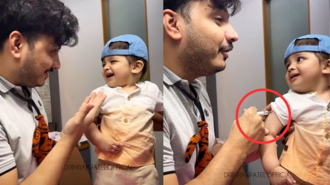 Funny Doctor Viral Video : डॉक्टर का डर बच्चों में इतना होता है कि क्लिनिक देखते ही रोना शुरू कर देते हैं। क्लिनिक में तो कई बच्चे तो इतनी जोर से रोते हैं कि आस पास बैठना भी मुश्किल हो जाता है। कुछ बच्चों को इंजेक्शन लगाने के लिए चार से पांच लोग लगते हैं जो उन्हें पकड़ते हैं और फिर डॉक्टर सुई लगा पाते हैं लेकिन एक डॉक्टर का वीडियो खूब वायरल हो रहा है, जिसमें उन्होंने गाना गाते हुए बच्चे को कब सुई लगा दी, पता ही नहीं चला।