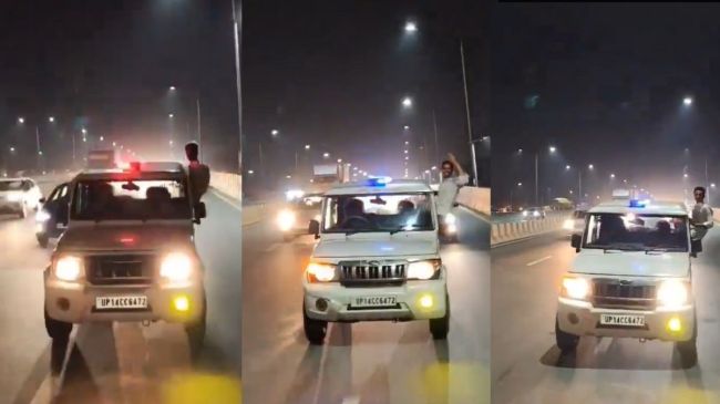 बताया जा रहा है कि वीडियो गाजियाबाद के विजय नगर का है। इस वीडियो में कोई अधिकारी सवार था या नहीं, इसकी जानकारी नहीं है। कार की विंड शील्ड पर मजिस्ट्रेट लिखा हुआ है, साथ ही गाड़ी पर लाल और नीली बत्ती भी लगी हुई है। हाई वे पर दौड़ रही इस गाड़ी की खिड़की से एक शख्स भी लटका हुआ है।